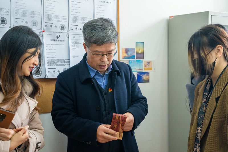 王华高度肯定了各创业团队的发展成绩和未来规划,并鼓励大家今后进一步结合学校特色和学科优势,加强校外资源和线上市场开拓,不断提高企业和产品的核心竞争力。他为每个团队送上新春“福”字,祝福每一个团队在新的一年里能够“福”星高照,虎虎生威。