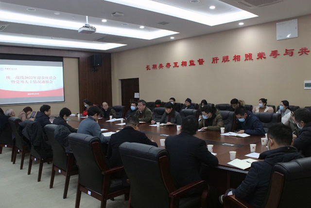 党委统战部部长陈文武、发展规划与学科建设处副处长陈彪、校友与社会合作处处长陈华荣,分别就学校统一战线2021年度工作情况、“十四五”事业改革与发展总体规划、社会合作工作情况进行了通报。围绕民主党派基层组织建设、党外人士建言献策参政议政等内容,民盟地大委员会主委曹淑云、九三学社地大委员会社员陈万旭、党外知识分子联谊会会长童金南分别作发言交流。同时,湖北省政协常委吴北平、民革地大支部主委宁伏龙、原湖北省政府参事刘庆生等,就提升学校治理水平、发挥党外人士建言献策民主监督作用、加强民主党派基层组织建设等方面积极交流发言。