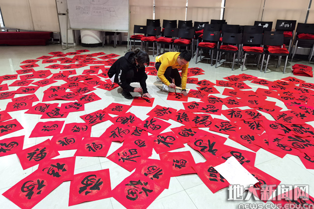 书画协会成员、地球科学学院地质学基地班大三本科生聂锴凝说:“贴‘福’字是我国迎接新年的传统习俗,寄托了人们对美好生活的期盼。我们希望通过新年写‘福’送‘福’活动,让更多人感受到中华优秀传统文化的独特魅力。”