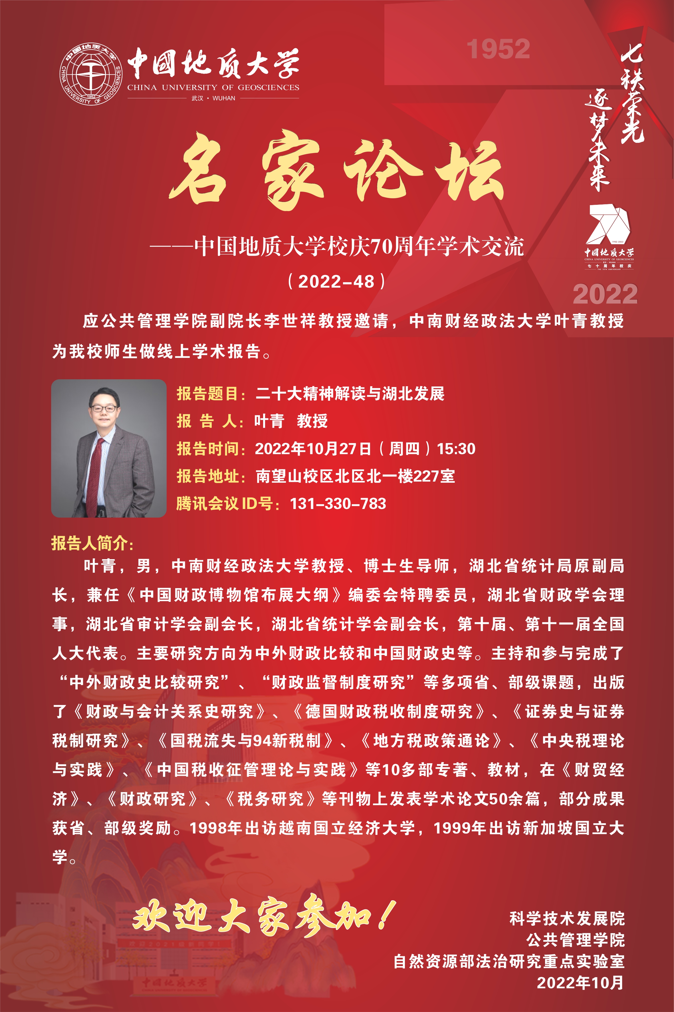 【10月27日】名家论坛:二十大精神解读与湖北发展