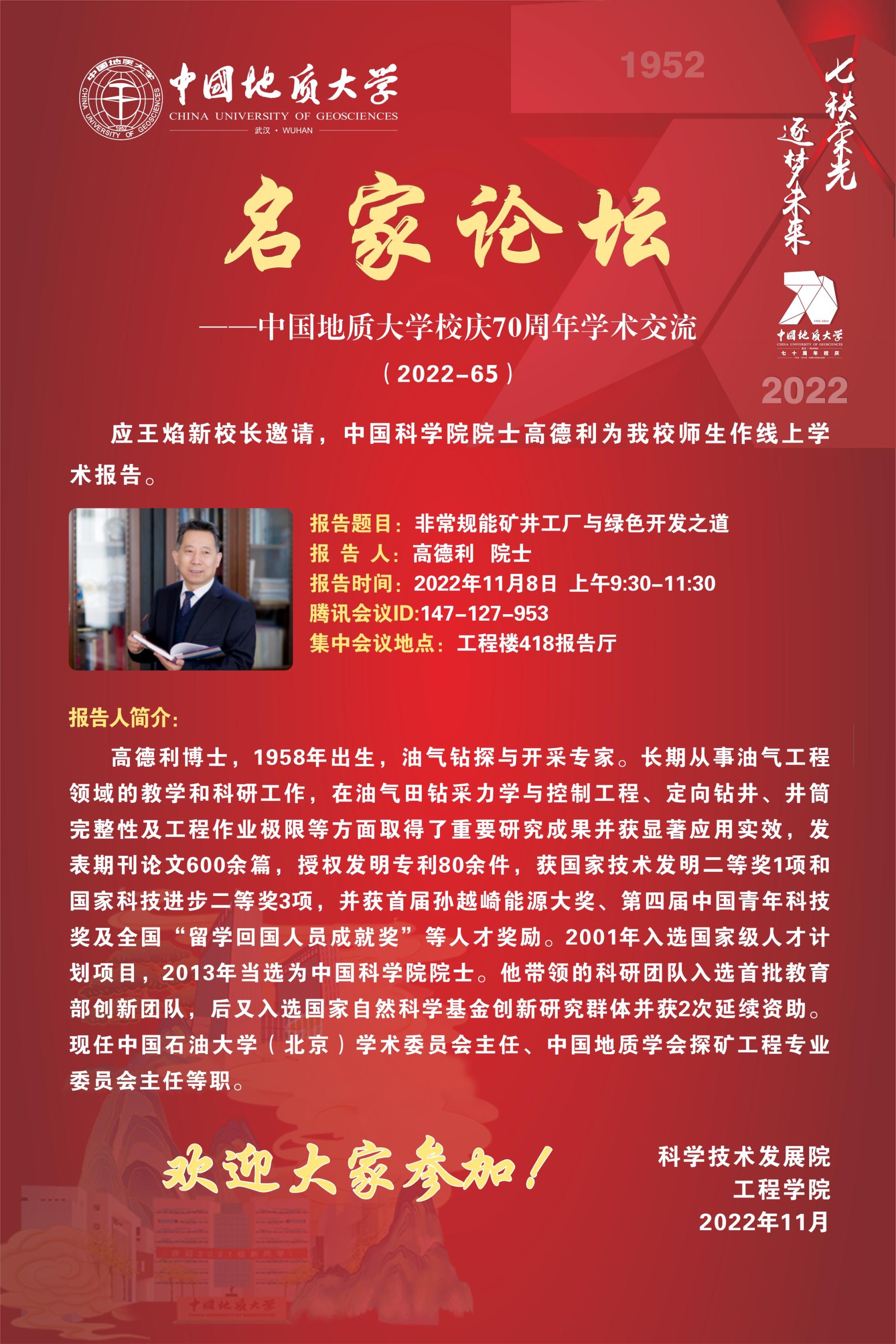 【11月8日】名家论坛:中国科学院院士高德利学术报告