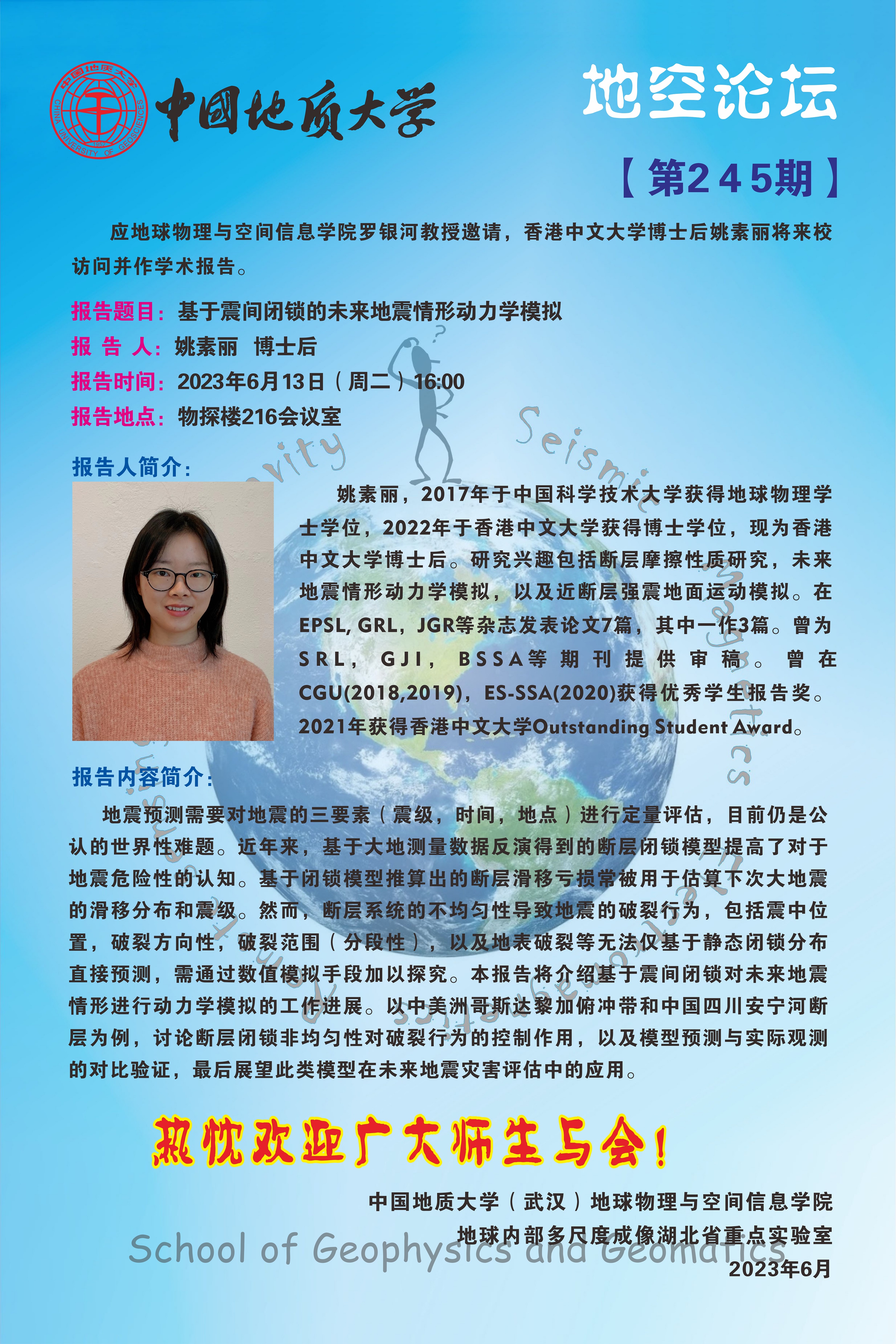 【6月13日】地空论坛:基于震间闭锁的未来地震情形动力学模拟