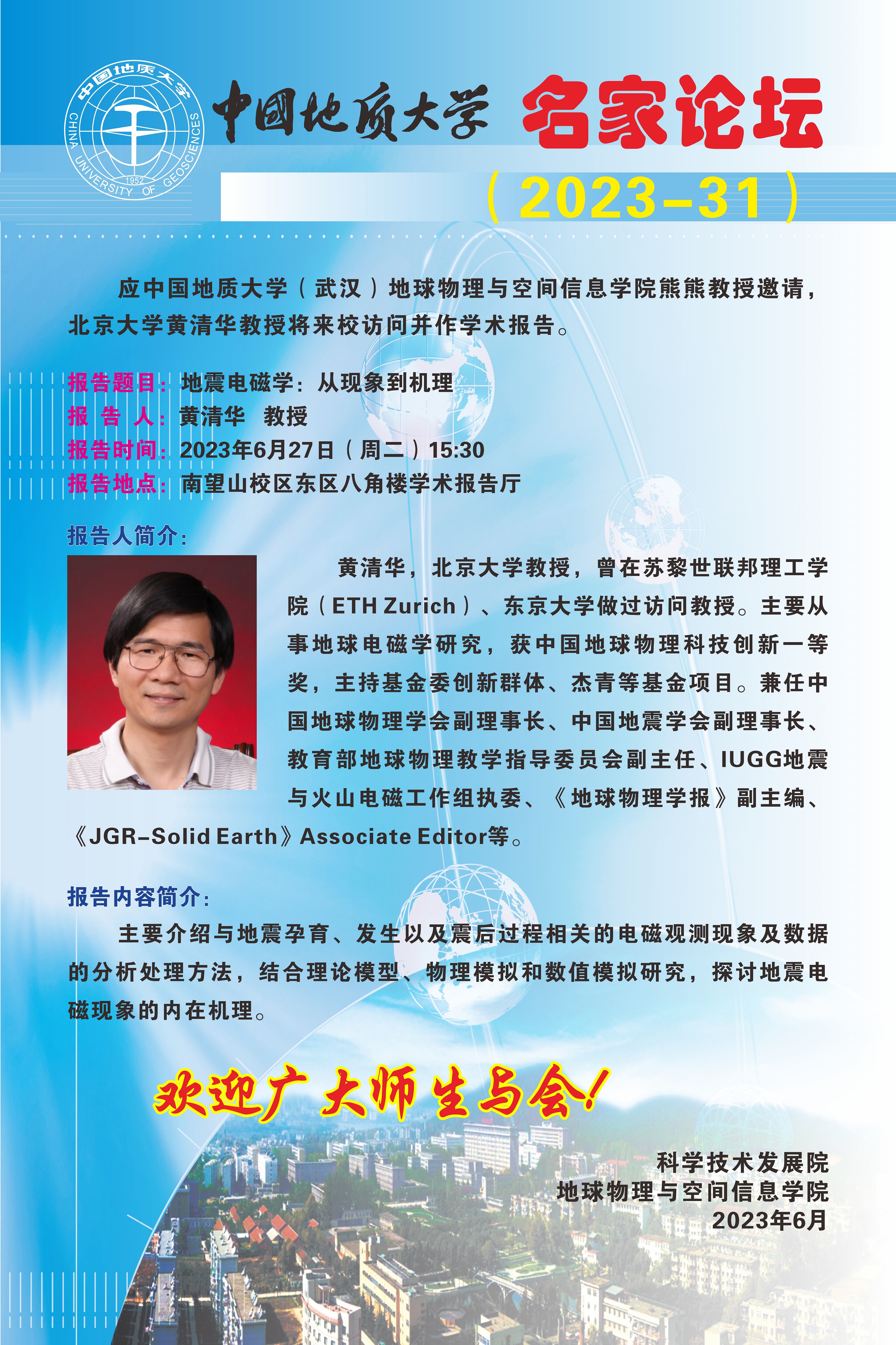 【6月27日】名家论坛:地震电磁学:从现象到机理
