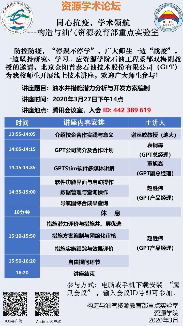 【3月27日】资源学术论坛:油水井措施潜力分析与开发方案编制