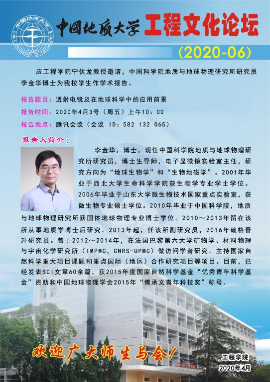 【4月3日】工程文化论坛:中国科学院地质与地球物理研究所研究院李金华博士作学术报告