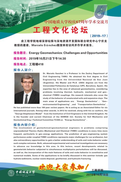 [10月21日]工程文化论坛:德州农工大学土木工程系Marcelo Sanchez教授学术报告
