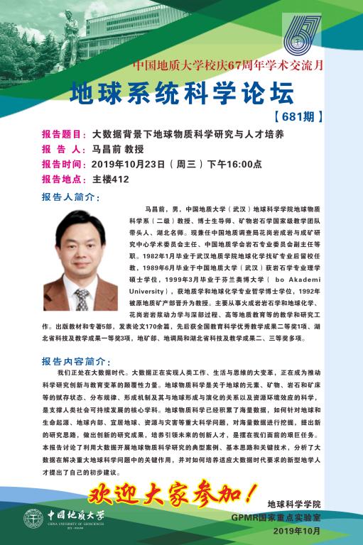 [10月23日]地球系统科学论坛:地球科学学院马昌前教授学术报告