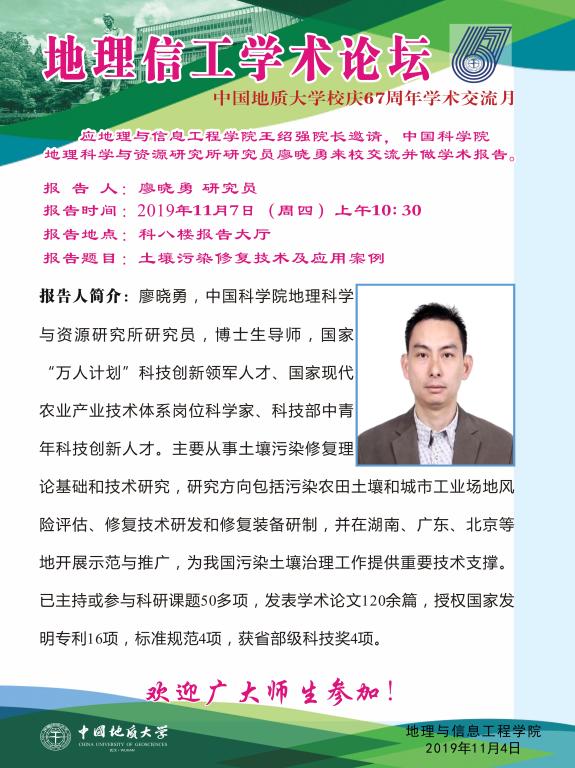 [11月7日]地理信工学术论坛:中国科学院地理科学与资源研究所研究员廖晓勇学术报告