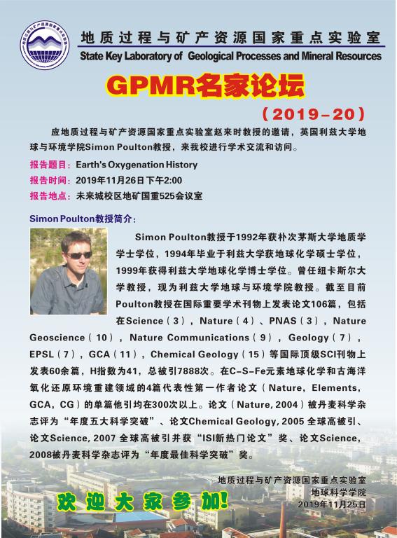 [11月26日]GPMR名家论坛:英国利兹大学地球与环境学院Simon Poulton教授学术报告