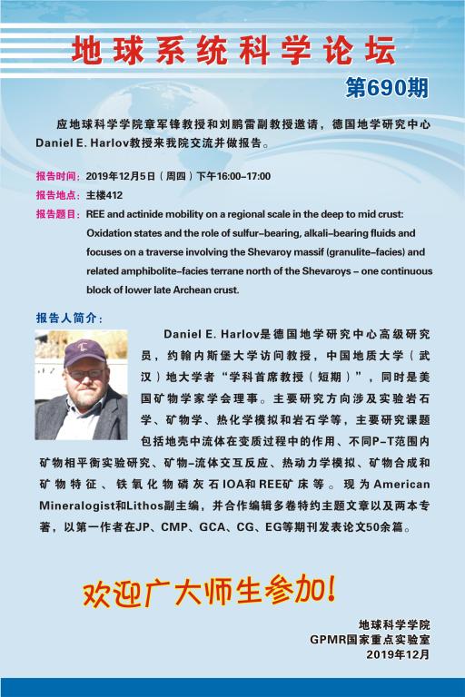 [12月5日]地球系统科学论坛:德国地学研究中心Daniel E.Harlov教授学术报告