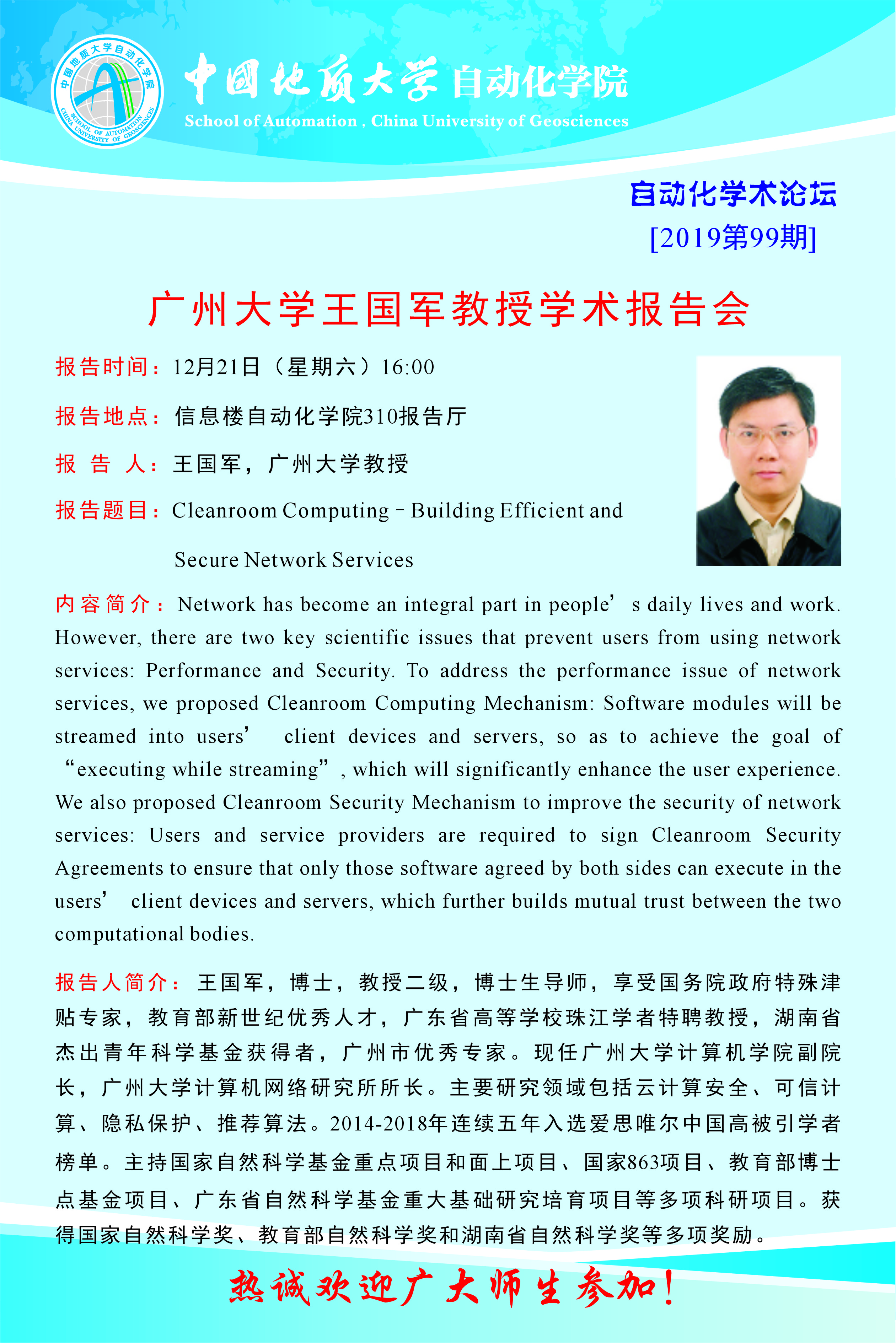 [12月21日]自动化学术论坛:广州大学王国军教授学术报告