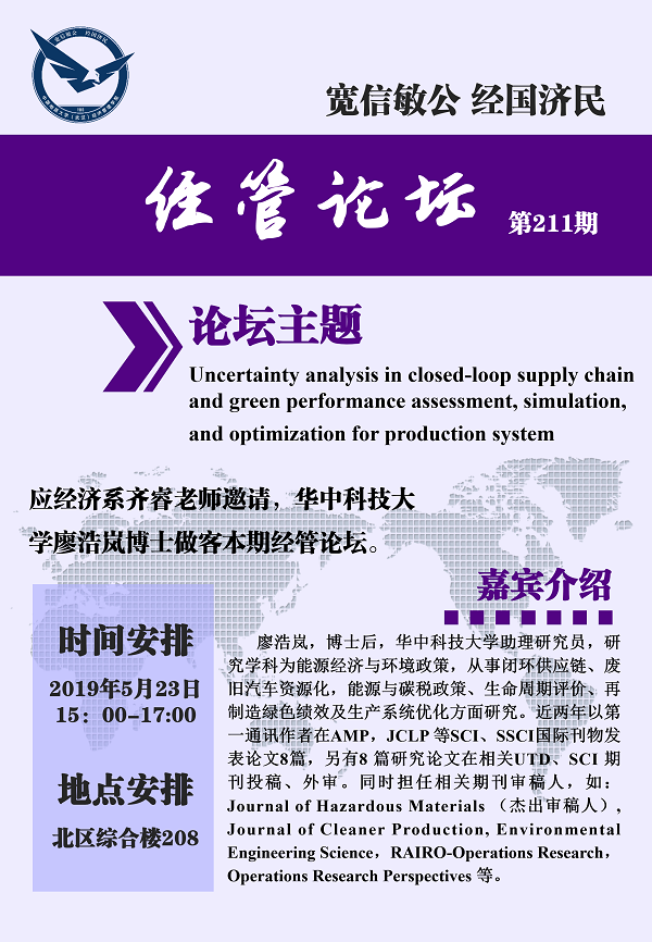 [5月23日]经管论坛:华中科技大学廖浩岚博士学术报告