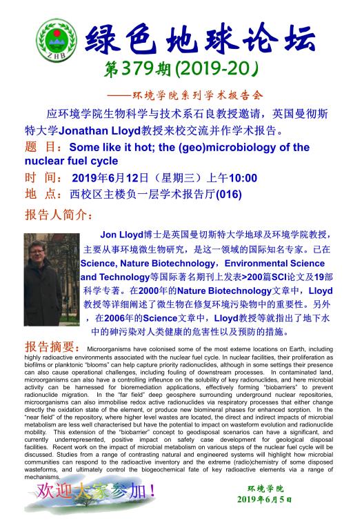 [6月12日]绿色地球论坛:英国曼切斯特大学Jonathan Lloyd教授学术报告