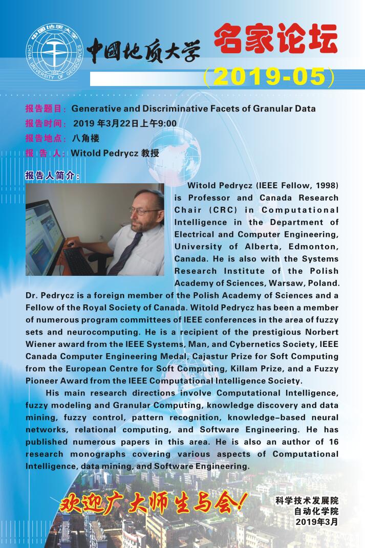 [3月22日]名家论坛:加拿大阿尔伯塔大学Witold Pedrycz院士学术报告会