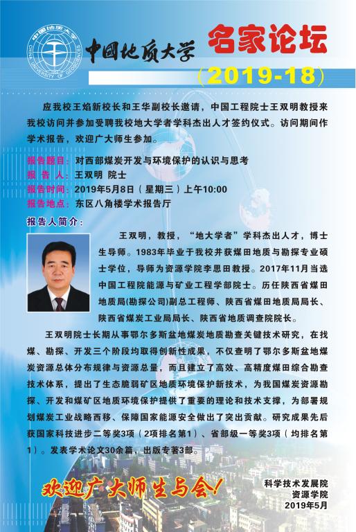 [5月8日]名家论坛:中国工程院院士王双明学术报告