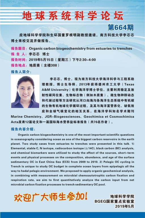 [5月15日]地球系统科学论坛:南方科技大学李芯芯博士学术报告