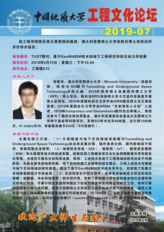 [5月15日]工程文化论坛:澳大利亚蒙纳士大学张乾兵博士学术报告