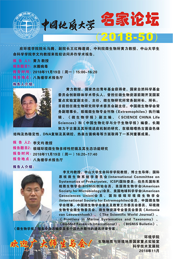[11月19日]名家论坛:中科院微生物所黄力教授 中山大学生命科学学院李文均教授学术报告