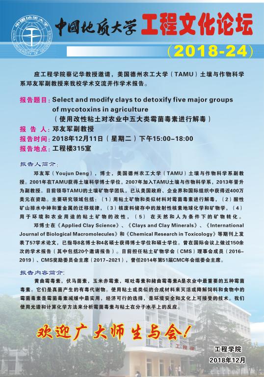 [12月11日]工程文化论坛:美国德州农工大学土壤与作物科学系邓友军副教授学术报告