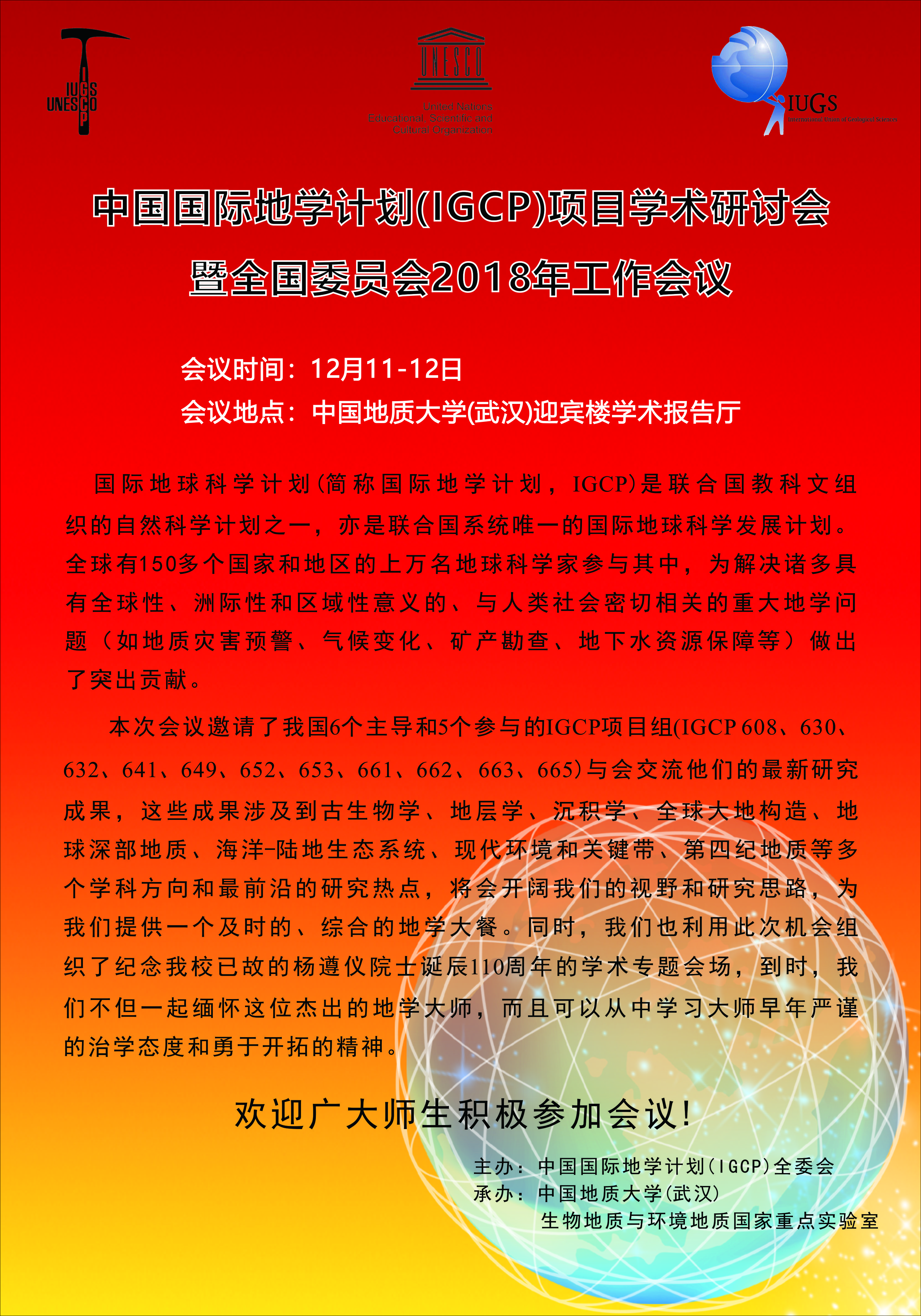 [12月11-12日]中国国际地学计划(IGCP)项目学术研讨会暨全国委员会2018年工作会议