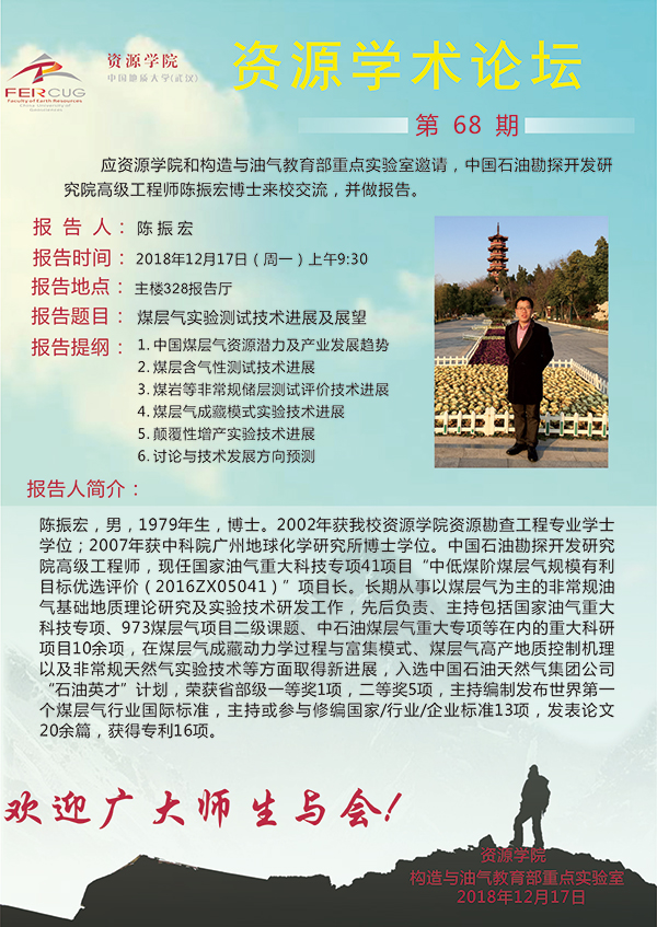[12月17日]资源学术论坛:中国石油勘探开发研究院高级工程师陈振宏博士学术报告
