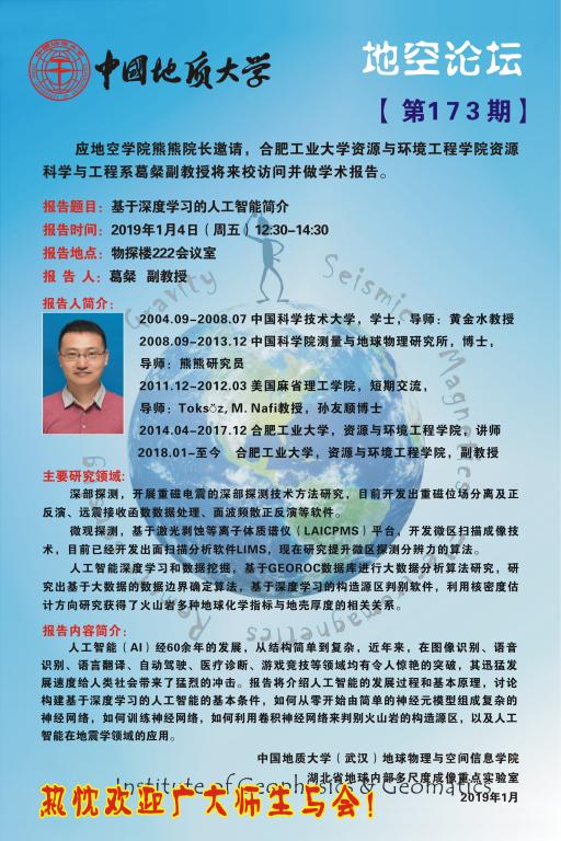 [1月4日]地空论坛:合肥工业大学资源与环境工程学院葛粲副教授学术报告