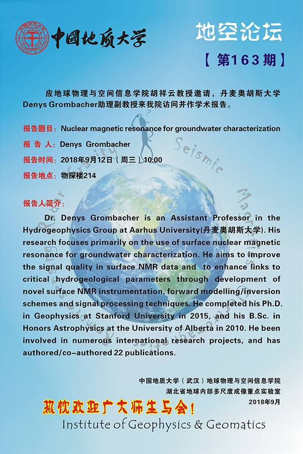 [9月12日]地空论坛:丹麦奥胡斯大学Denys Grombacher教授来我院访问并作学术报告。