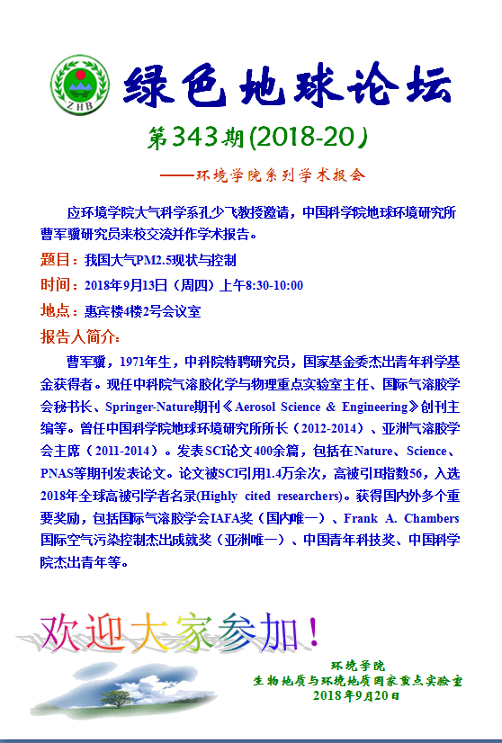 [9月13日]绿色地球论坛:中科院地球环境研究所曹军骥研究员学术报告