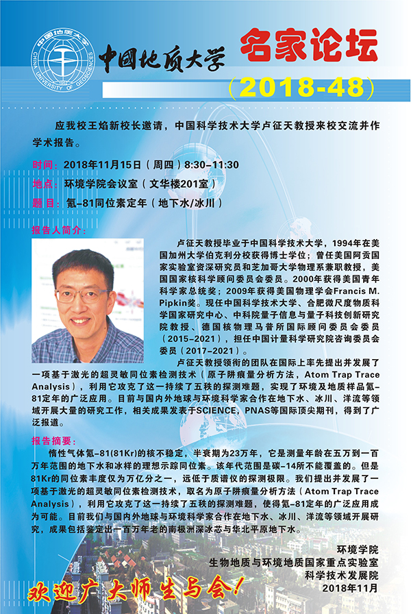 [11月15日]名家论坛:中国科学技术大学卢征天教授学术报告