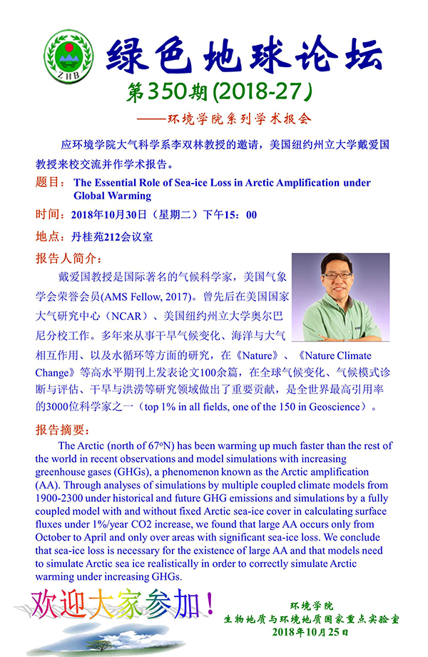 [10月30日]绿色地球论坛:美国纽约州立大学戴爱国教授学术报告