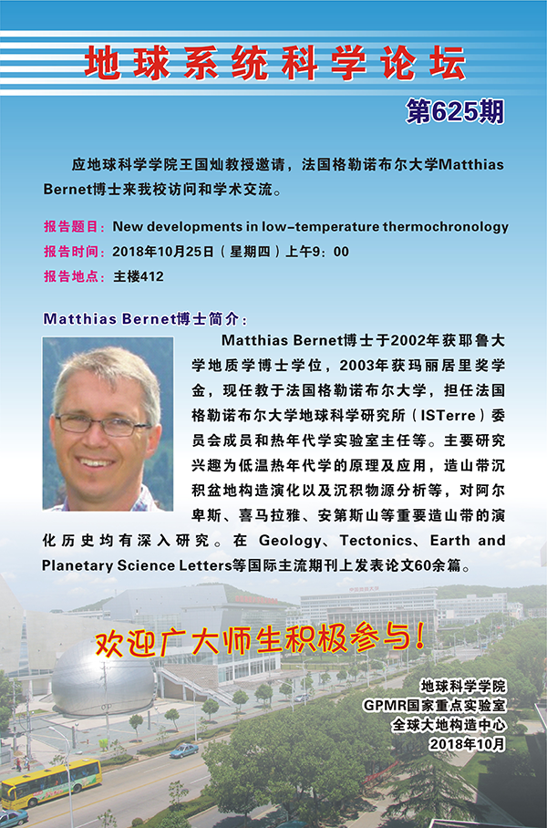 [10月25日]地球系统科学论坛:法国格勒诺布尔大学Matthias Berne博士学术报告